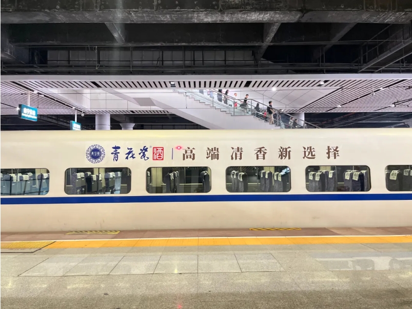 在旅游出行需求爆棚的五一假期,高鐵成為人們出行的首選。南寧東站作為重要交通樞紐,人潮涌動,青花瓷品牌專列在這樣的背景下發車,吸引了無數旅客的目光。車身外,青花瓷酒的品牌標識與高鐵列車硬朗的線條完美融合,形成了一道獨特而亮麗的風景線。無論是在熙熙攘攘的站臺,還是在飛馳而過的鐵軌上,都能讓人們一眼捕捉到青花瓷酒的獨特魅力。