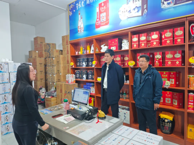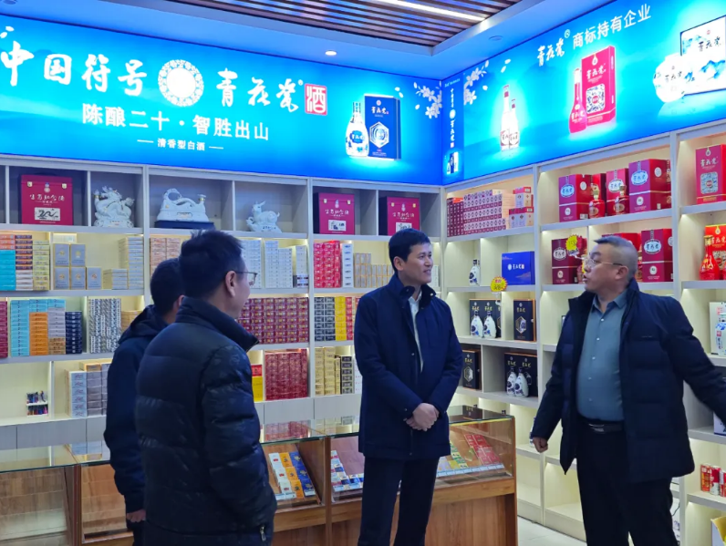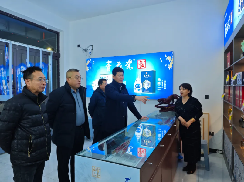 隨后,調研團隊一行前往應縣,與應縣經銷商劉廣濤一同深入應縣核心商圈的終端網點,實地查看產品鋪貨率與品牌露出情況。在青花瓷酒應縣專賣店內,朱明董事長仔細觀摩了品牌文化展示區、產品陳列區的布局設計,強調專賣店是傳遞品牌理念、服務核心客戶的重要窗口,要持續優化體驗感,讓消費者更直觀地感受青花瓷酒的文化底蘊與品質魅力。